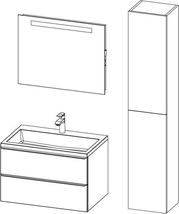 Das Produkt ist für den Einsatz in belüfteten Badezimmern bei Temperaturen von 17-24 °C und einer relativen Luftfeuchtigkeit von 45-70 % vorgesehen. Da das Material der Möbelteile feuchtigkeitsbeständig ist, dürfen die Holzteile nicht längerfristig in direkten Kontakt mit Wasser kommen.