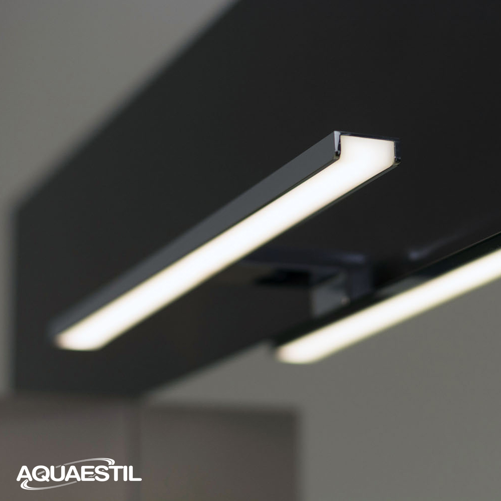 With its modern design with thin edges and high energy efficiency, the LED lamp LINEA is an ideal addition to a mirror. An additional light source contributes to the aesthetic impression and functionality of your bathroom space, and the silver, black matte or white matte finish of the lamp is coordinated with the colors of Aquaestil bathroom furniture handles.