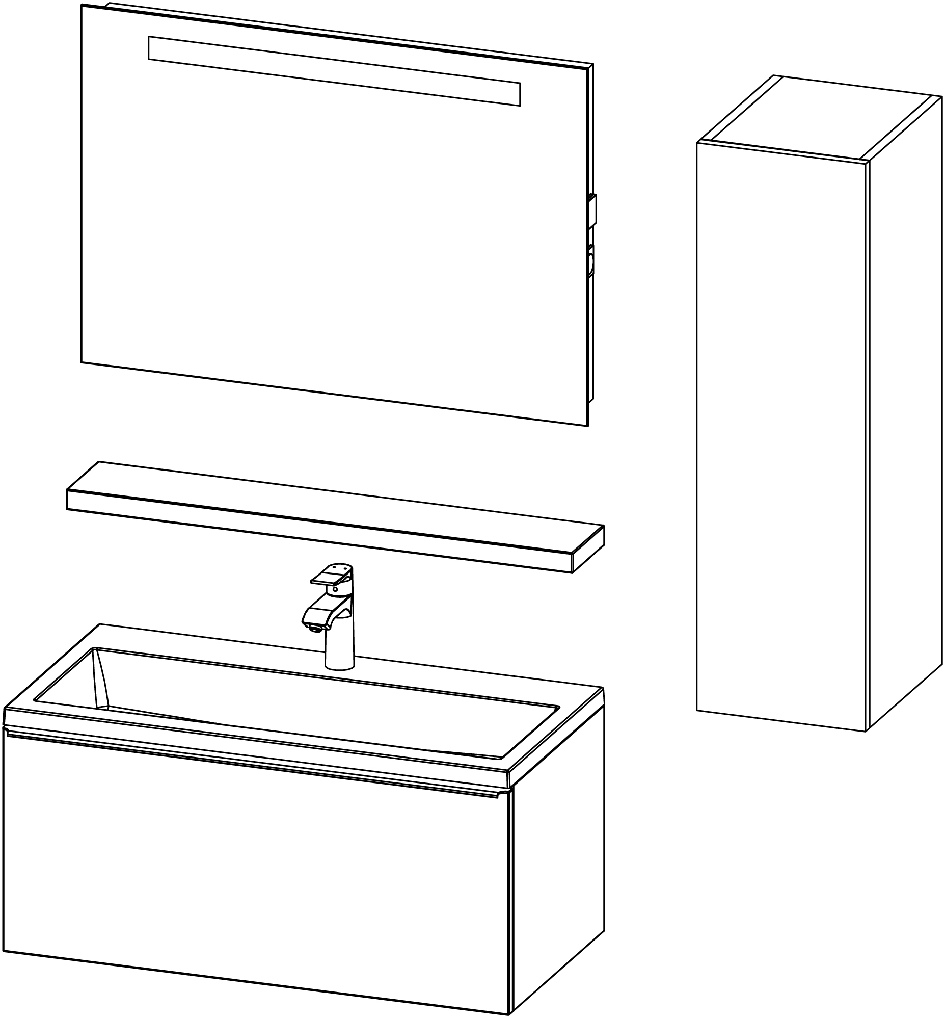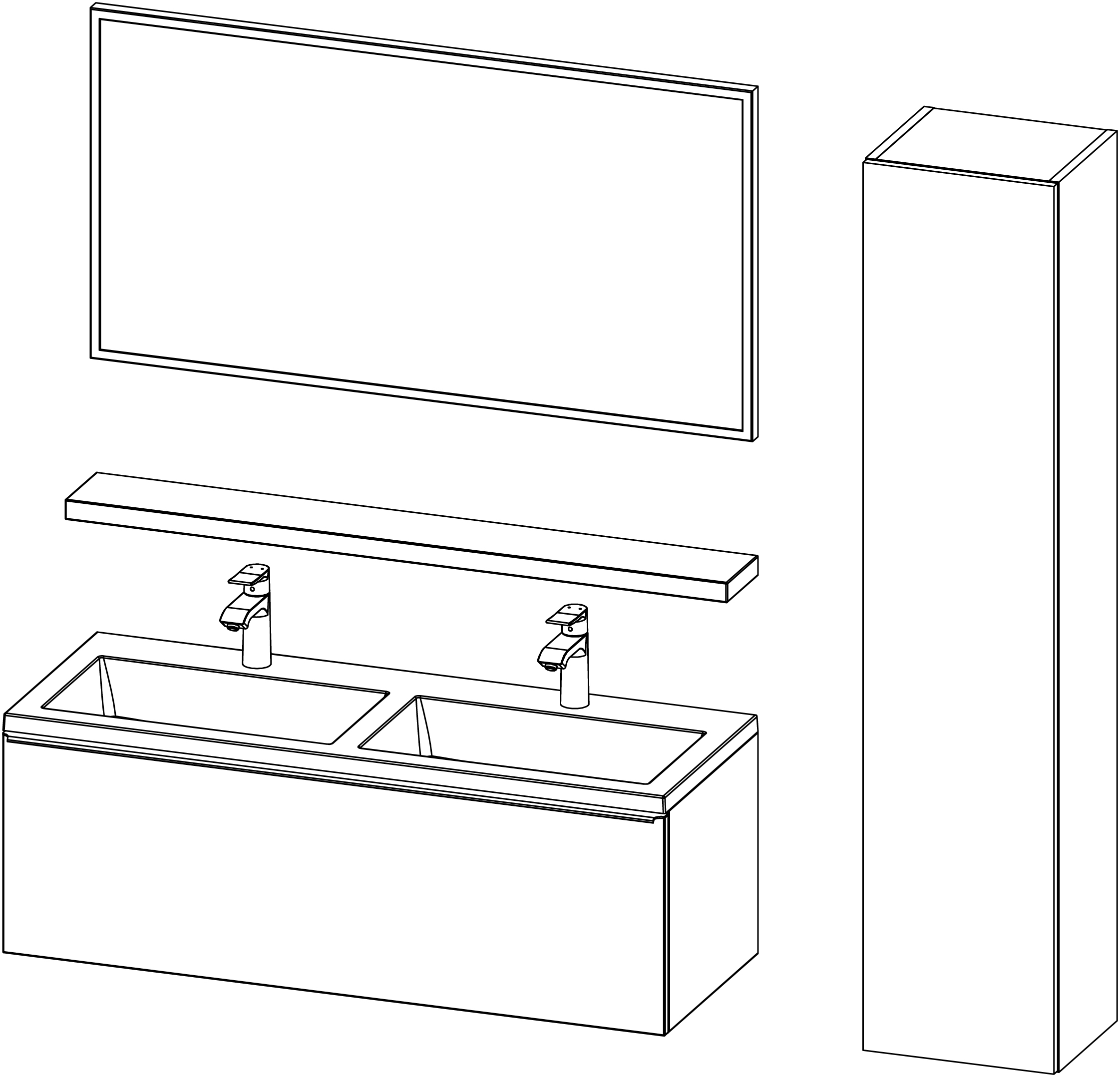 The product is intended for use in ventilated bathroom spaces with a temperature of 17-24 °C and relative humidity of 45-70 %. Although the material of the furniture components is moisture-resistant, the wooden parts should not be exposed to prolonged direct contact with water.