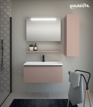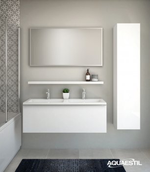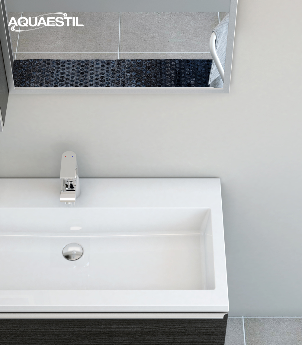 Aquaestil bathroom furniture washbasins are made of cast marble, or in certain lines, ceramic. For cleaning and maintaining Aquaestil washbasins, you may use Aquaestil Cleaning Solution for Acrylic and Glass Surfaces or a standard liquid bathroom detergent. To remove limescale, we recommend using alcohol vinegar or limescale cleaners that do not contain microgranules, which could scratch the surface of the washbasin.