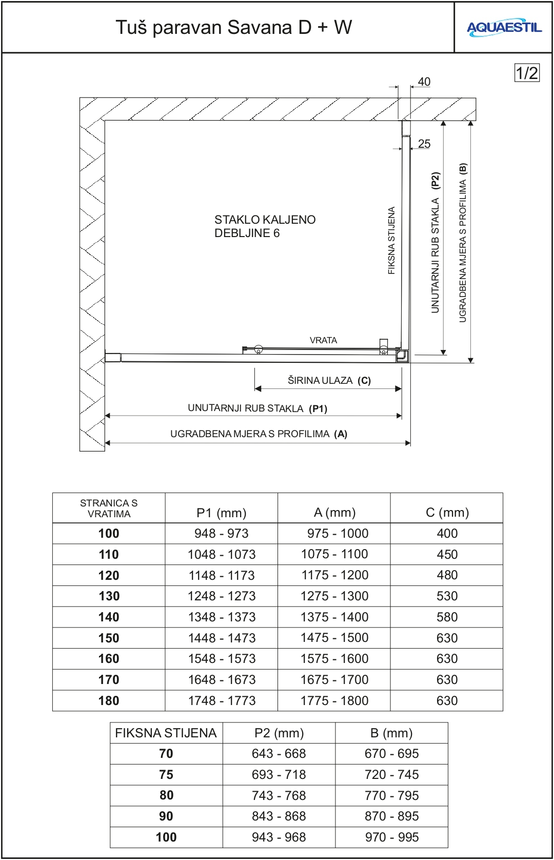 • Ukoliko se paravan postavlja na pločice, a ne na tuš kadu, uz narudžbu je potrebno dostaviti nacrt sa točnim dimenzijama prostora za tuširanje.