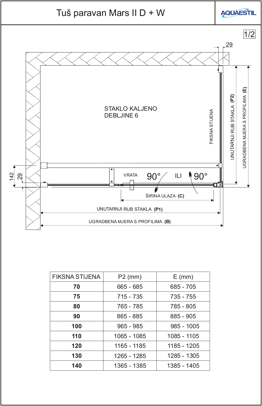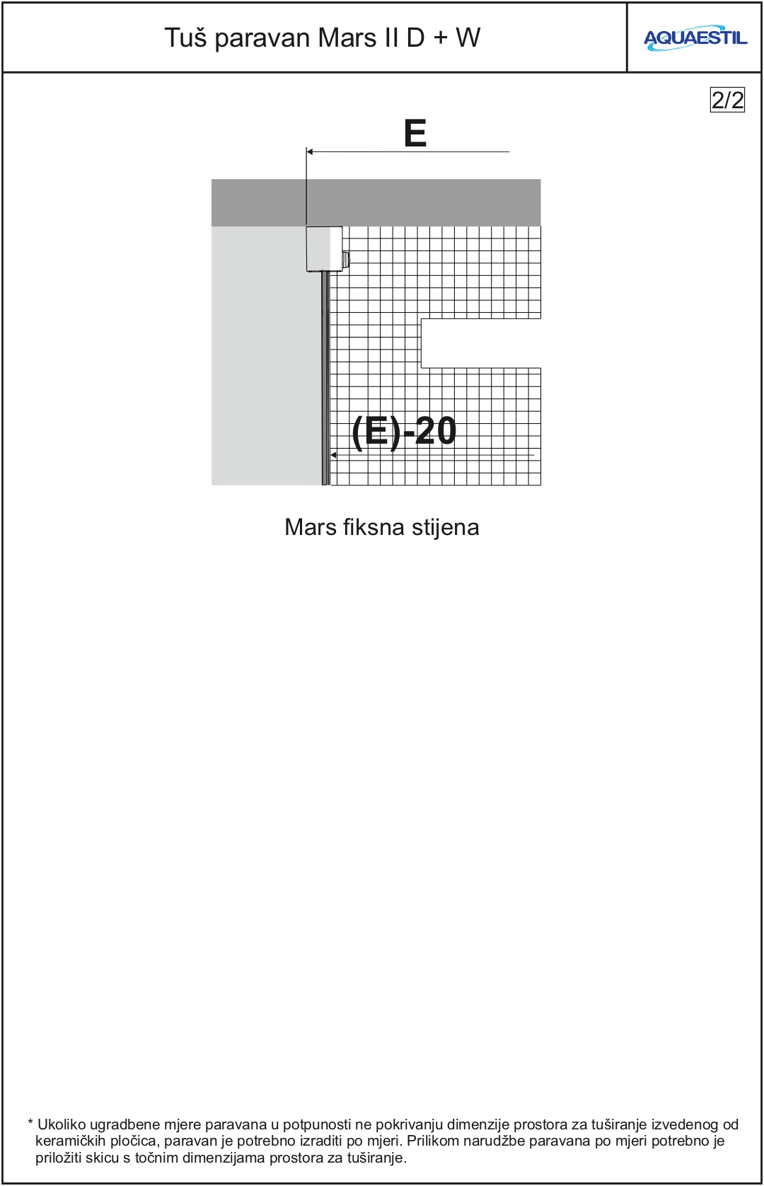 - Ukoliko se paravan montira na pločice, a ne na tuš kadu, prilikom narudžbe to je potrebno naglasiti i dostaviti skicu prostora za tuširanje.