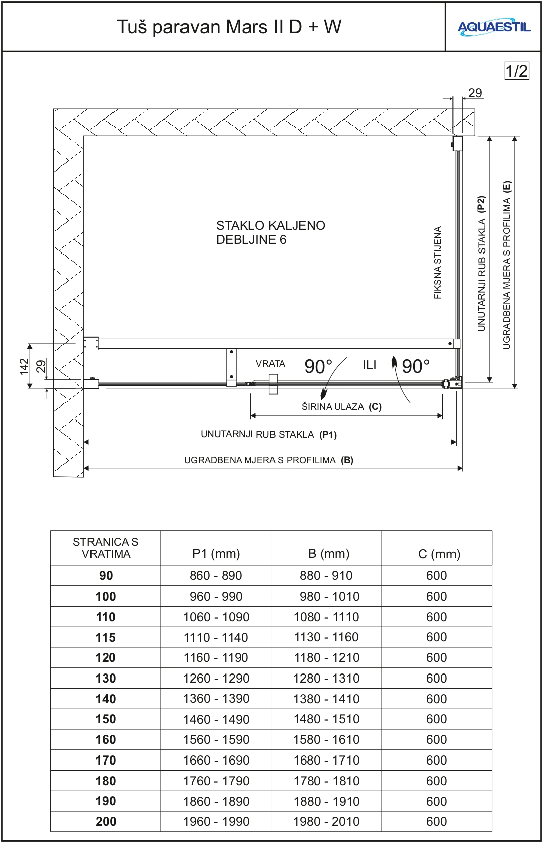 Mars II D+W je kvalitetan paravan koji se sastoji od fiksne stranice "W" i stranice "D" koju sačinjavaju fiksna stijena i okretna vrata. Paravan je opremljen elegantnim, u presjeku okruglim profilima i 6 mm kaljenim staklom koje je tvornički tretirano nano-nanosom protiv kamenca. Prilikom montaže paravana moguće je podesiti smjer otvaranja vrata (prema unutra ili prema van).