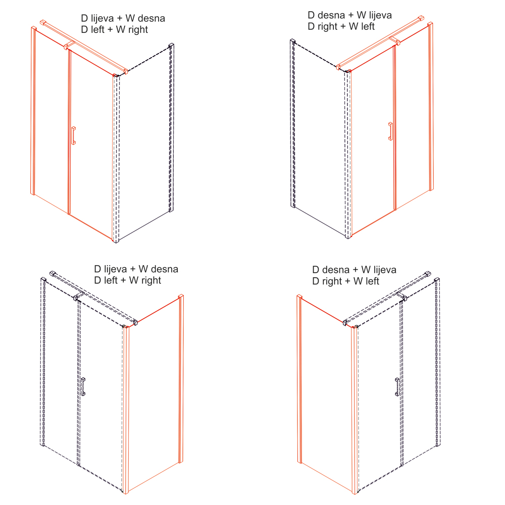 - Smjer otvaranja vrata (prema unutra ili prema van) može se odrediti prilikom montaže.