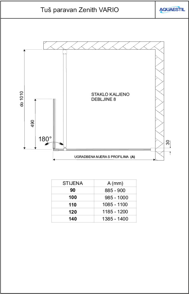Paravan koji se sastoji od fiksne stijene različitih širina i okretnog dijela širine 50 cm koji se može rotirati za 180° s tri točke zastoja. Zenith Vario pruža bolju zaštitu od prskanja izvan prostora za tuširanje u odnosu na klasičnu fiksnu stijenu te je idealna nadopuna čak i za manje „walk-in“ prostore za tuširanje.