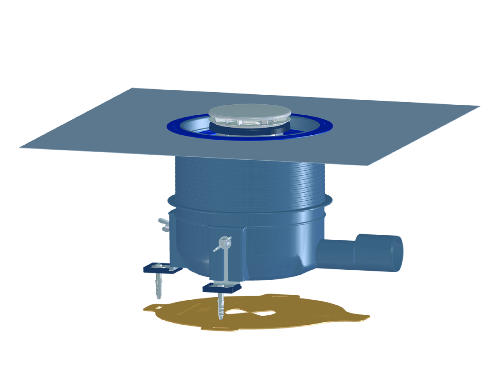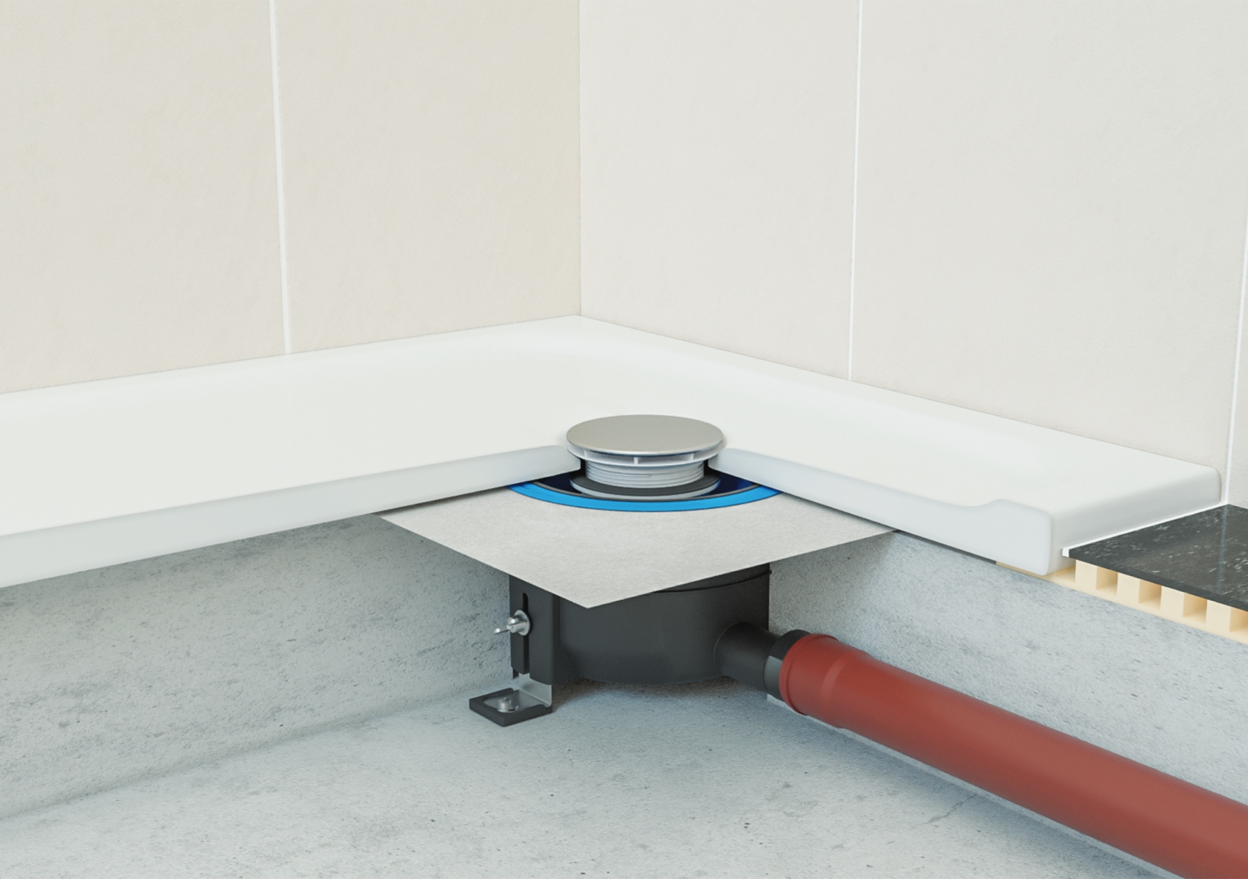 Set di installazione speciale per piatti doccia poco profondi che consente un'installazione semplice e uno scarico sicuro.