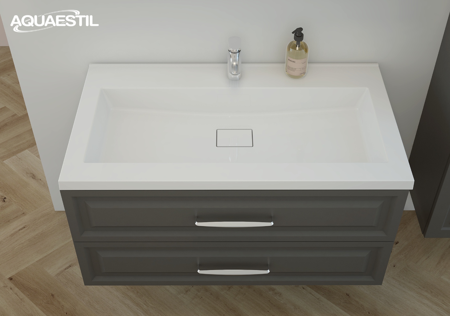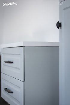 I lavabi dei mobili da bagno Aquaestil sono realizzati in ghisa minerale o, in alcune linee, in ceramica. Per la pulizia e la manutenzione dei lavabi Aquaestil, è possibile utilizzare la Aquaestil agente per la pulizia delle superfici in acrilico e vetro o un detergente liquido standard per il bagno. Per rimuovere il calcare, si consiglia di utilizzare aceto o prodotti specifici per la rimozione del calcare che non contengono microgranuli, in grado di graffiare la superficie del lavabo.