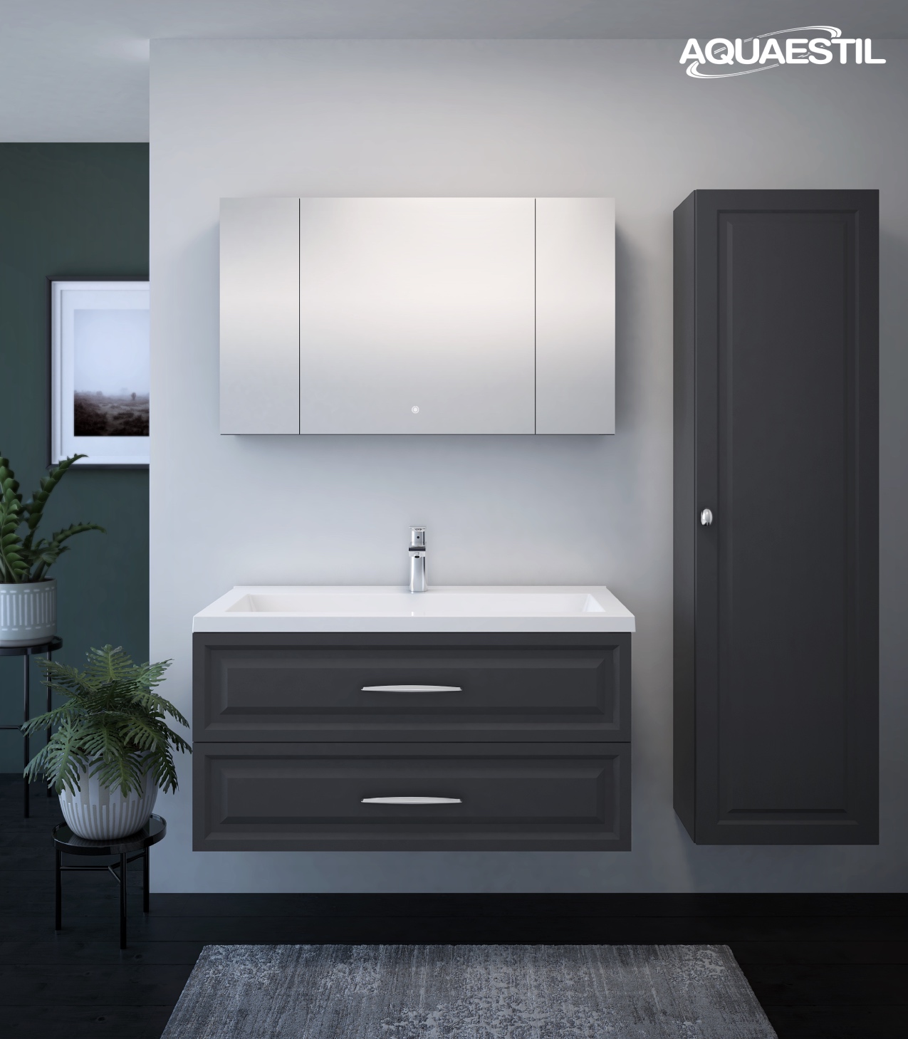 Il materiale dei mobili da bagno Aquaestil è resistente all'umidità, ma non completamente impermeabile. L'esposizione prolungata a livelli elevati di umidità e acqua può causare il rigonfiamento dei bordi delle parti in legno dei mobili e la possibile corrosione degli specchi.