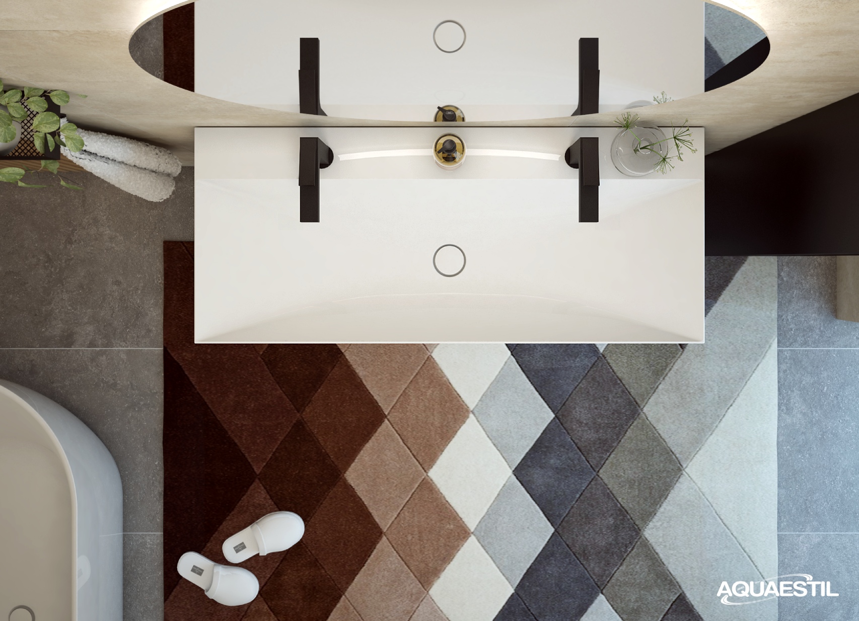 I lavabi dei mobili da bagno Aquaestil sono realizzati in ghisa minerale o, in alcune linee, in ceramica. Per la pulizia e la manutenzione dei lavabi Aquaestil, è possibile utilizzare la Aquaestil agente per la pulizia delle superfici in acrilico e vetro o un detergente liquido standard per il bagno. Per rimuovere il calcare, si consiglia di utilizzare aceto o prodotti specifici per la rimozione del calcare che non contengono microgranuli, in grado di graffiare la superficie del lavabo.