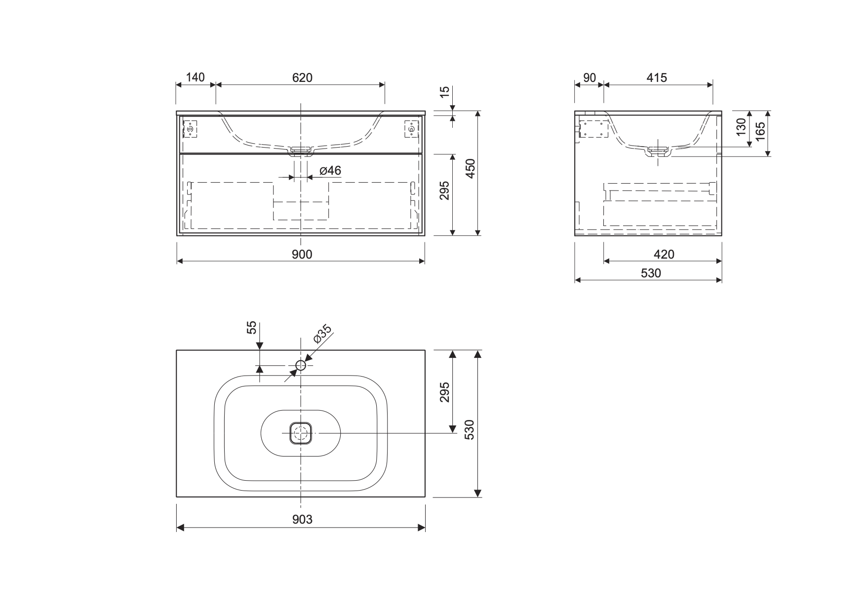 lavabo singolo + base con un cassetto