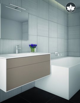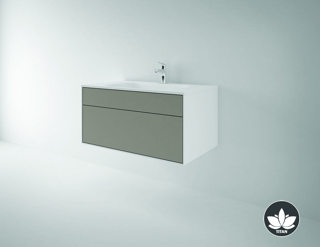 L'eccezionale arredo bagno Titan I è composto da un lavabo singolo o doppio e una base realizzata in materiale composito ASTONE con la parte frontale costituita da uno o due cassetti disponibili in tanti differenti colori e decori.