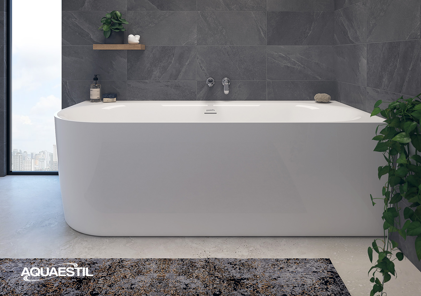 - Kopalna kad se dostavi pripravljena za namestitev s nevidno spojeno oblogo, tovarniški vgrajenim podnožjem in integriranim odtočno-prelivnim kompletom.