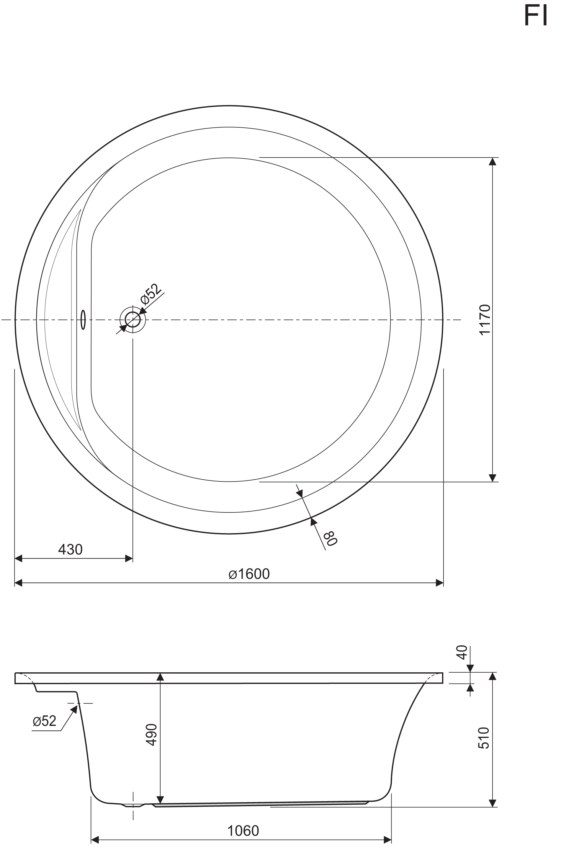 Fi je elegantna, okrogla kad s premerom 160 cm. Ta kad je namenjena vzidavi v tla, v kombinaciji z oblogo pa lahko v prostoru stoji tudi samostojno.