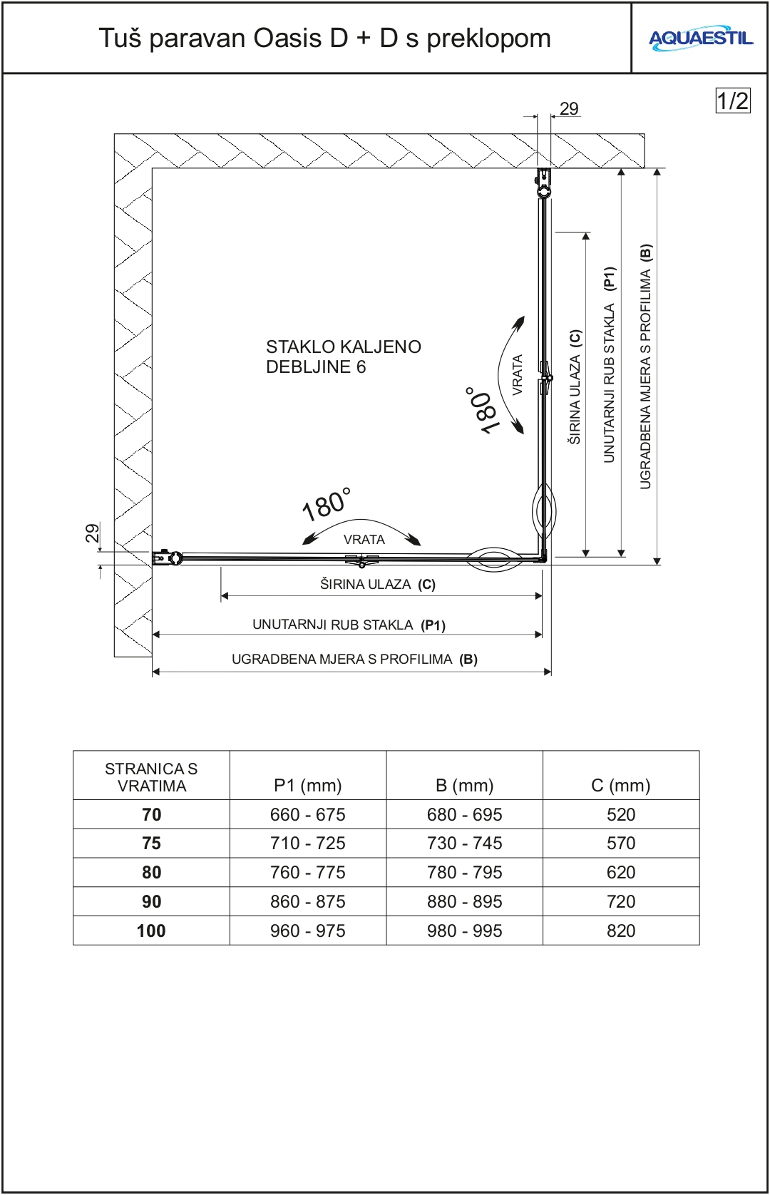 Ob naročilu paravana za vgradnjo na keramiko je potrebno priložiti preprosto skico z natančnimi merami prostora za tuširanje.