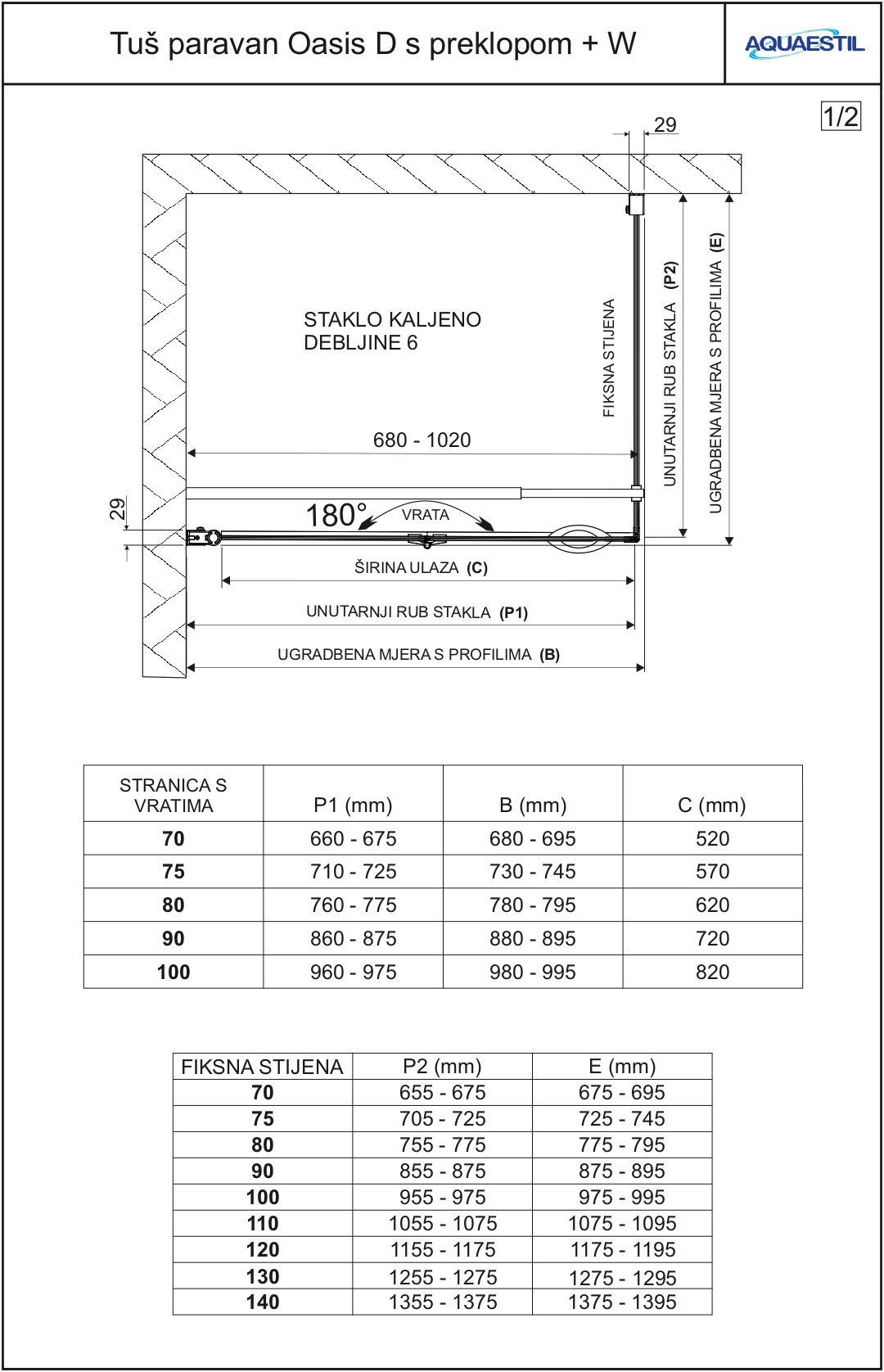 - If the screen is intended to be installed on tiles and not to the shower tray, the order has to include a drawing with exact dimensions of the showering area.