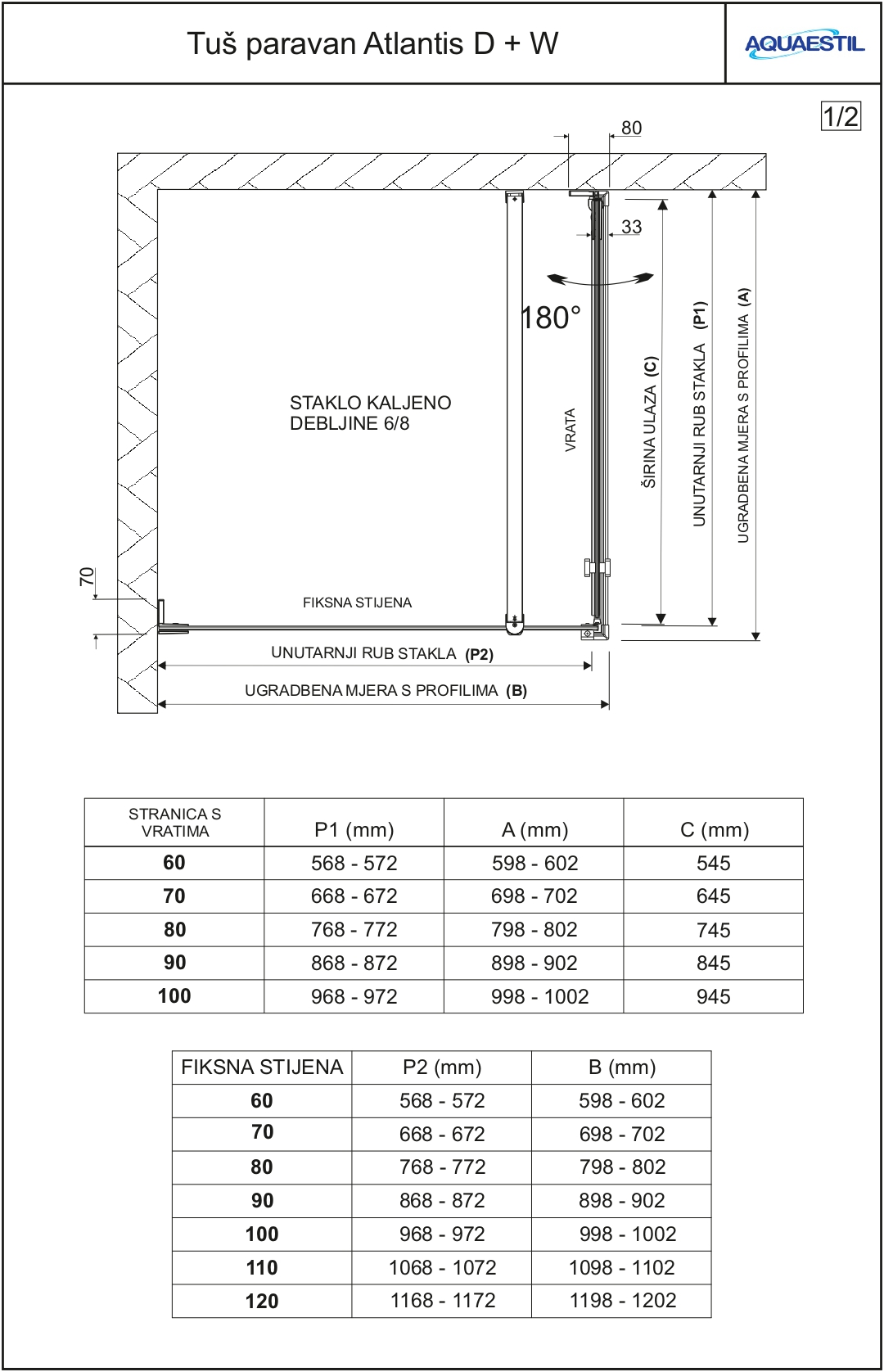 Atlantis D + W is a luxury screen consisting of a door and one fixed side. Door can be opened inwards and outwards thanks to the special seal. The lift system of the door allows a smooth opening. Due to the very small installation tolerance, this screen model can be ordered only by measure.