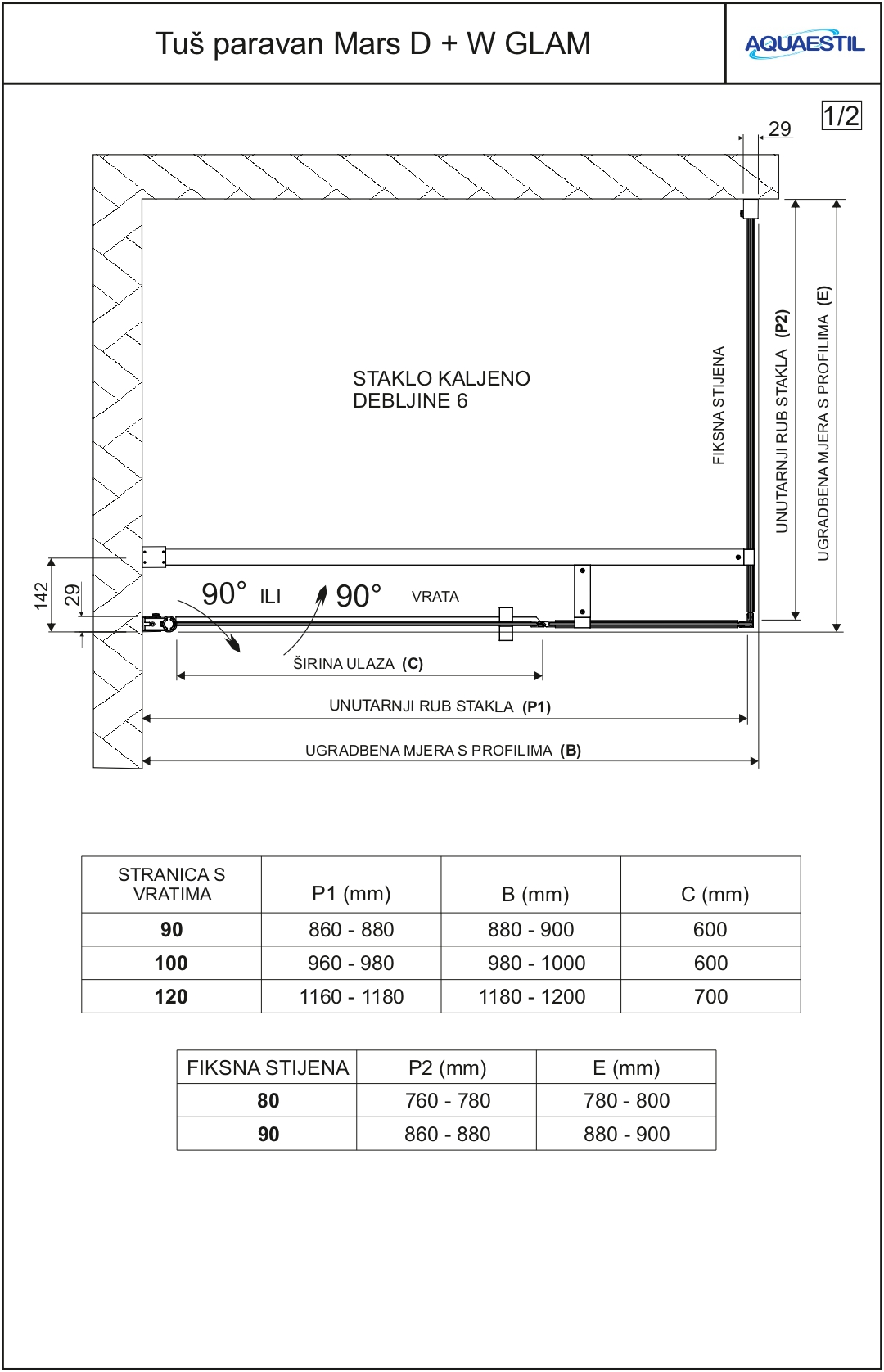 Mars Glam D+W is a very functional industrial-style shower screen consisting of a “W” fixed side and a “D” side consisting of a fixed wall and a hinged door. The shower screen is equipped with elegant profiles with round cross sections and tempered glass with a thickness of 6 mm, which is factory-treated with a nanocoating against limescale. The direction in which the door opens can be set when installing the shower screen (inwards or outwards).