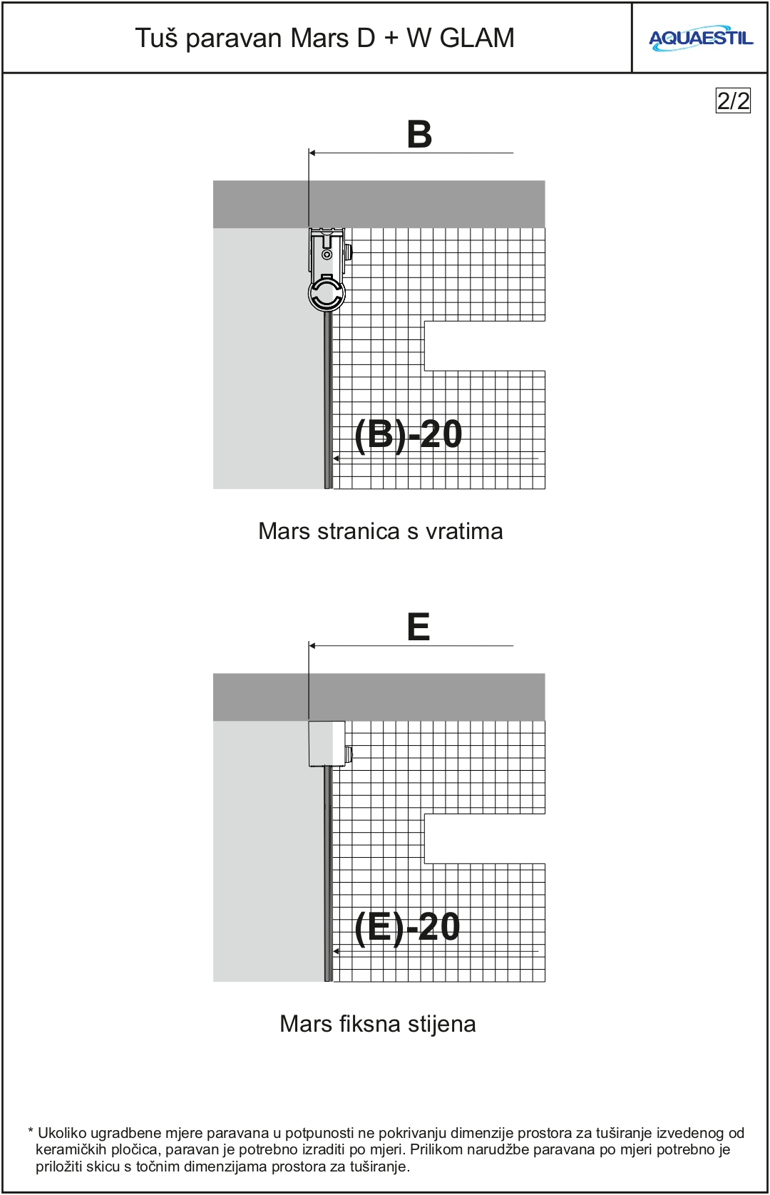 This accessory adheres to the edge of the shower tray or ceramic tile floor provided as a shower area and provides better sealing of the screens with swivel and folding doors. It is installed in such a way that the floor gasket on the door in the closed position sits on the aluminum floor sealing profile. It is delivered in length of 100 cm and if necessary shortened to the width of the door. Available in shower screen profile colors.