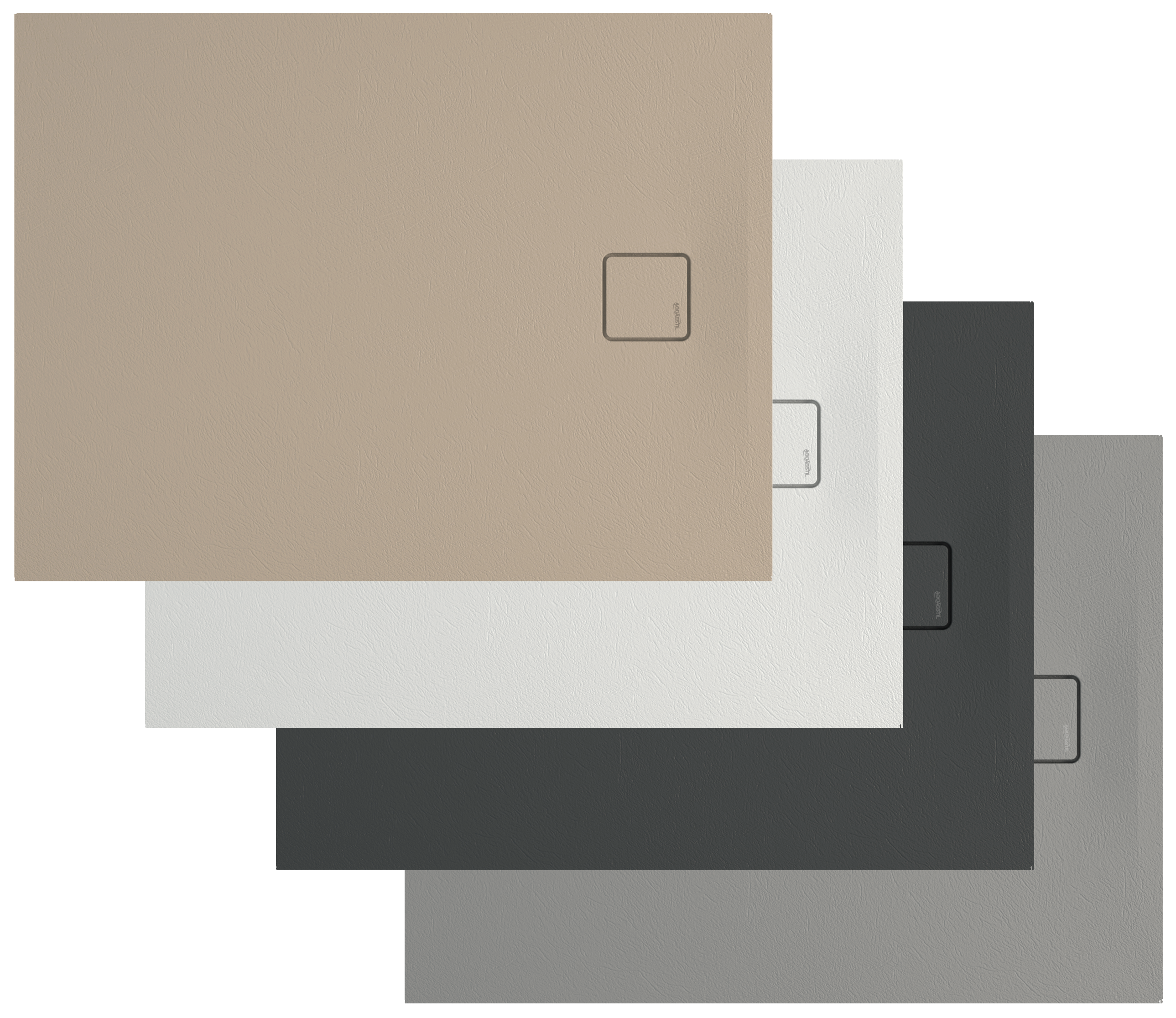 Stone DeLuxe mineral marble shower trays offer a solid and sophisticated surface that resembles concrete in white, beige, black or cement gray. An attractive siphon cover made in the same effect as the surface of the shower tray contributes to the characteristic appearance of Stone DeLuxe shower trays. A special advantage of Stone DeLuxe shower trays is the possibility of cutting to specific dimensions in order to adapt to configuration of the shower area.