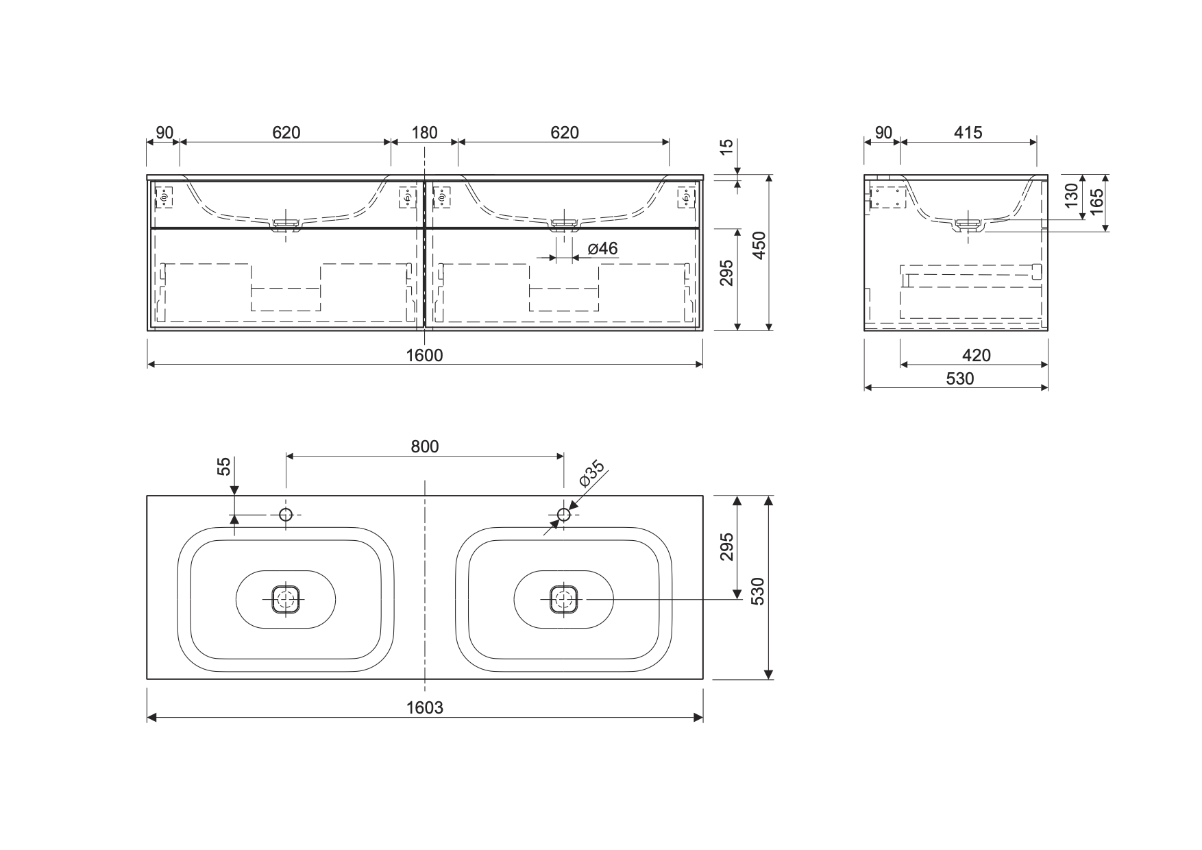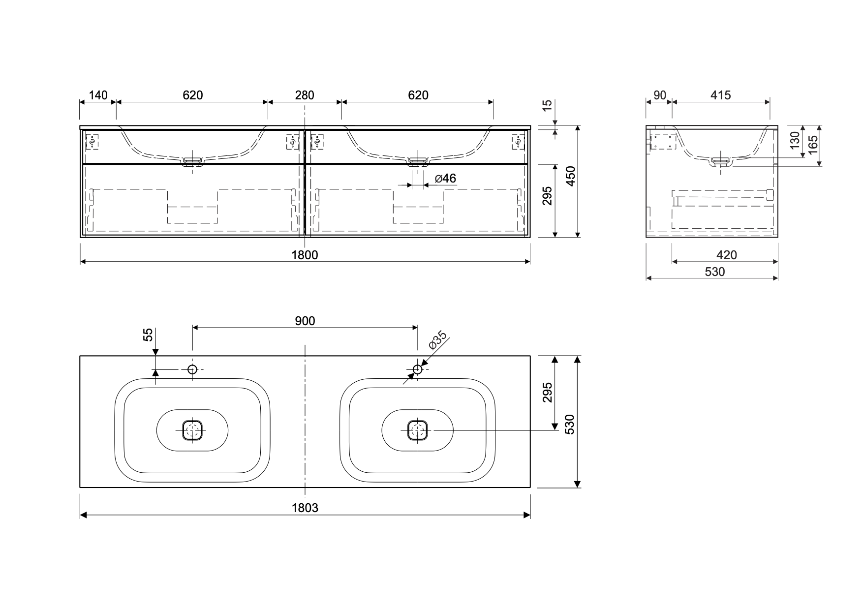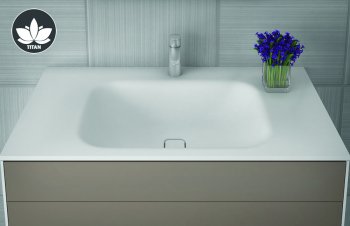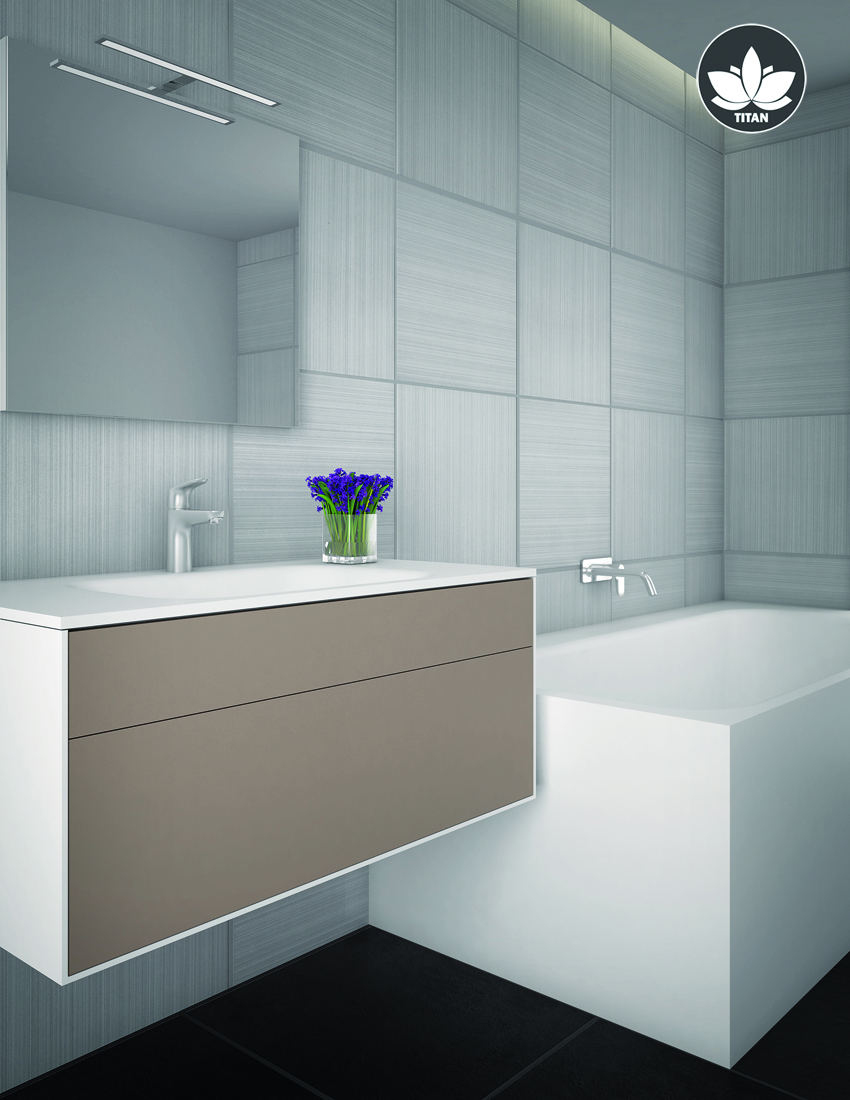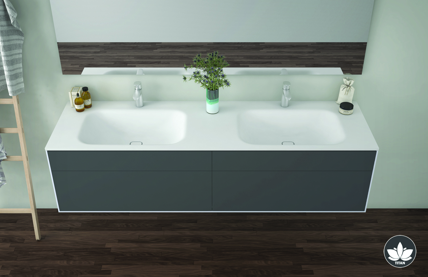 The Titan I premium bathroom furniture consists of a single or double basin and a vanity unit made of the ASTONE composite material, with a front comprising one or two drawers available in a variety of colours and styles.