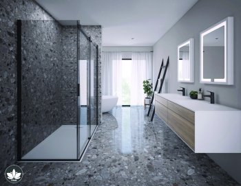 - ASTONE seamlessly connected plates in white mat effect on the bottom of the composition and lateral sides.