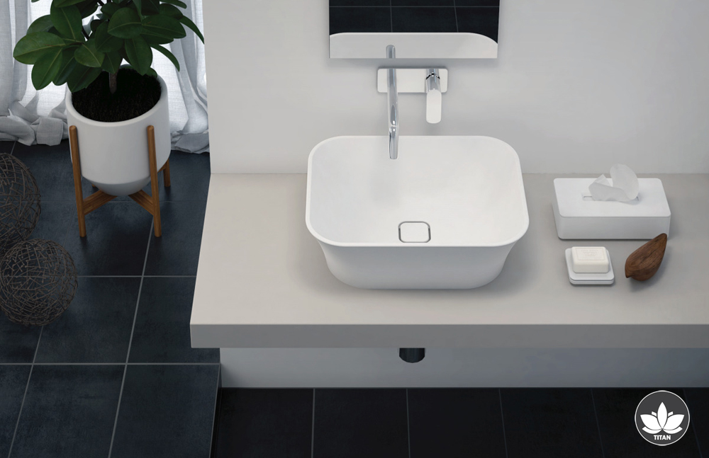 Create a unique bathroom interior experience with modern Titan square basins. The Titan square basins are available as freestanding basins and as vessel basins.