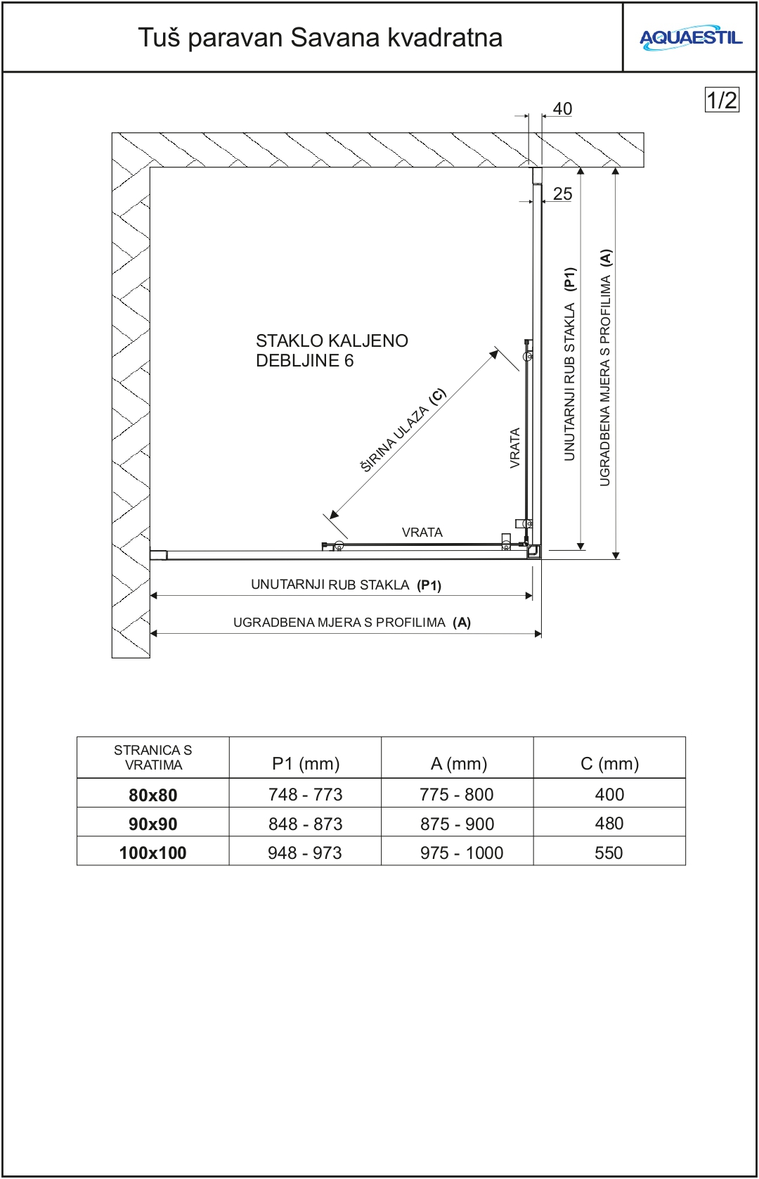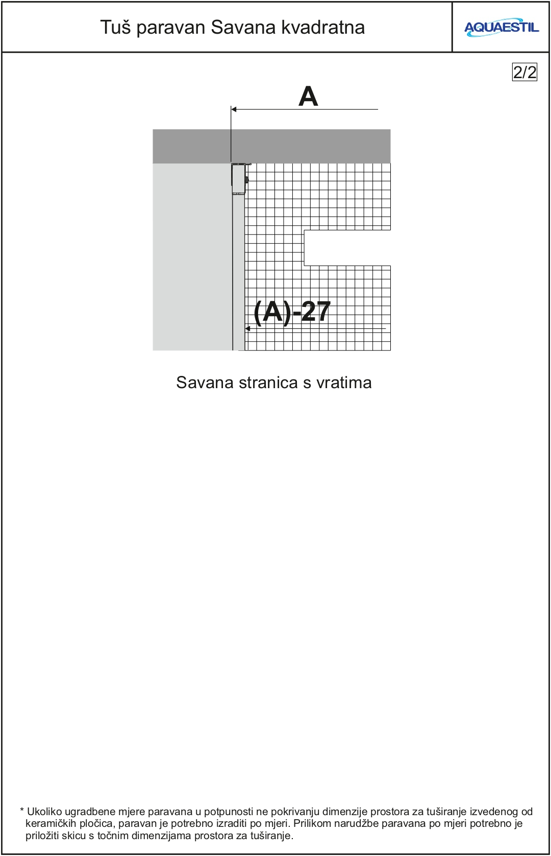 - Ukoliko se paravan postavlja na pločice, a ne na tuš kadu, uz narudžbu je potrebno dostaviti nacrt sa točnim dimenzijama prostora za tuširanje.