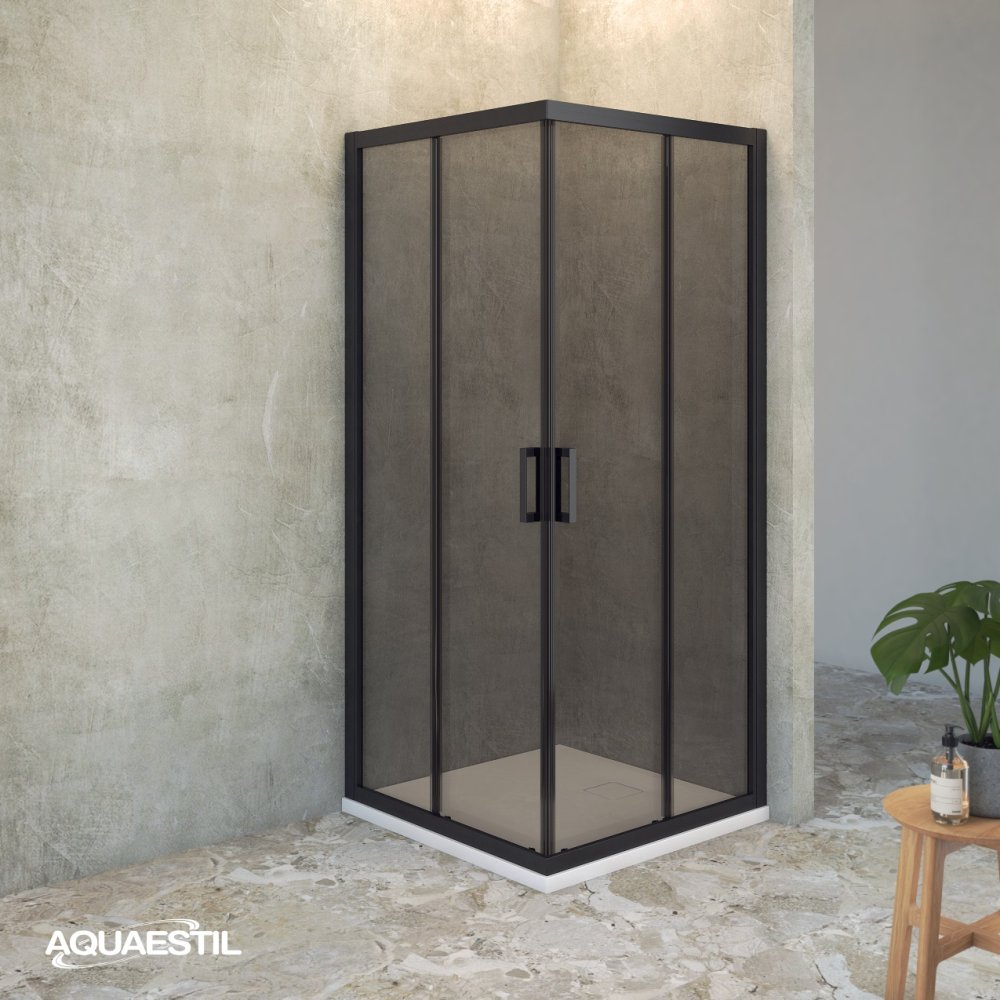 Ovaj moderni stakleni paravan sastoji se od dvije stranice s kliznim vratima istih dimenzija, a prvenstveno je namijenjen plitkim kvadratnim tuš kadama i prostorima za tuširanje izvedenim od keramičkih pločica. Elegantni profili koji se nalaze s gornje i donje strane osiguravaju maksimalnu čvrstoću cijele konstrukcije. Vrata su s gornje strane opremljena dvostrukim kotačićima koji osiguravaju lakše klizanje, a vertikalne brtve na spoju vrata su magnetne.