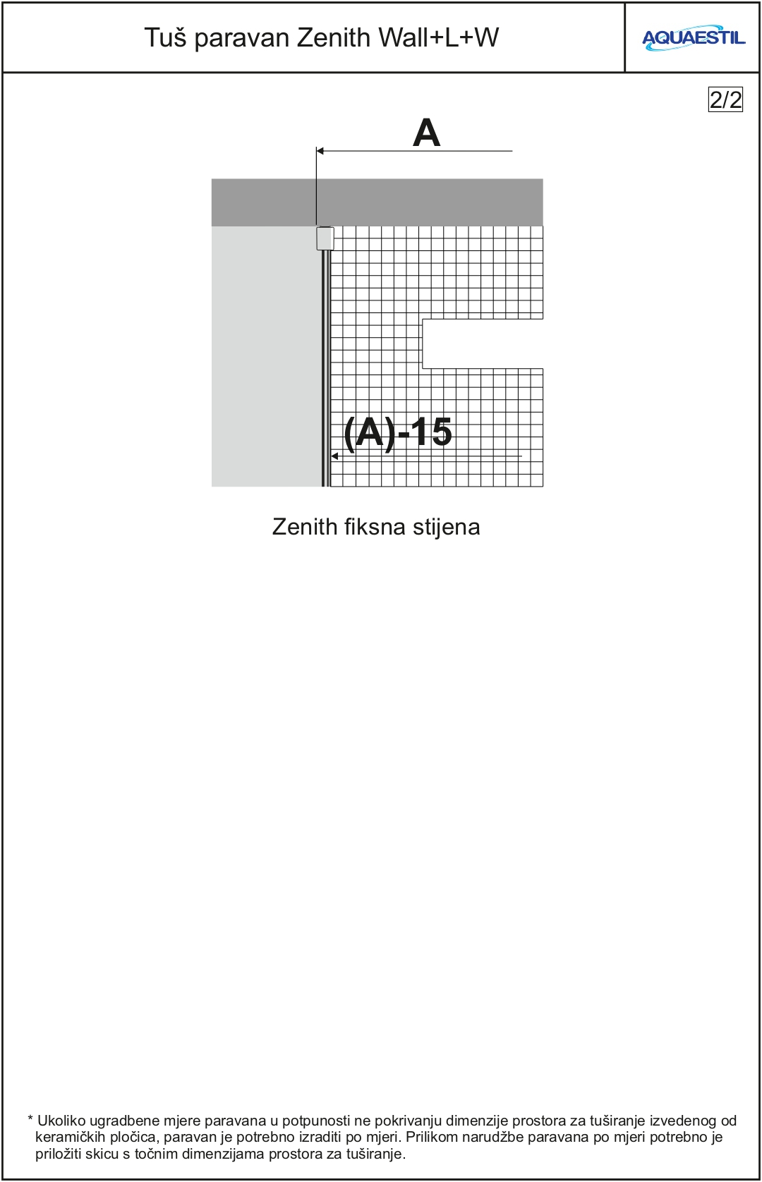 - Se la parete viene fissata alle piastrelle, e non al piatto doccia, all’ordine va allegato anche il disegno dello spazio doccia con l’indicazione esatta delle misure.